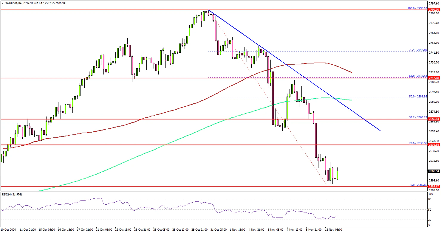 跌势甚至加速至2620美元以下。最终,价格测试了2590美元区域,然后进入盘整阶段。在下行方面,初步支撑位于2590美元附近。第一个主要支撑位在2580美元水平附近。