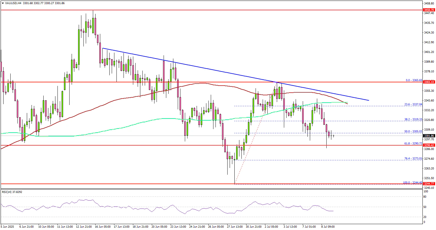 上行方面,直接阻力位在 3,350 美元和趋势线附近。下一个主要阻力位在 3,360 美元附近。主要阻力位可能是 3,380 美元。