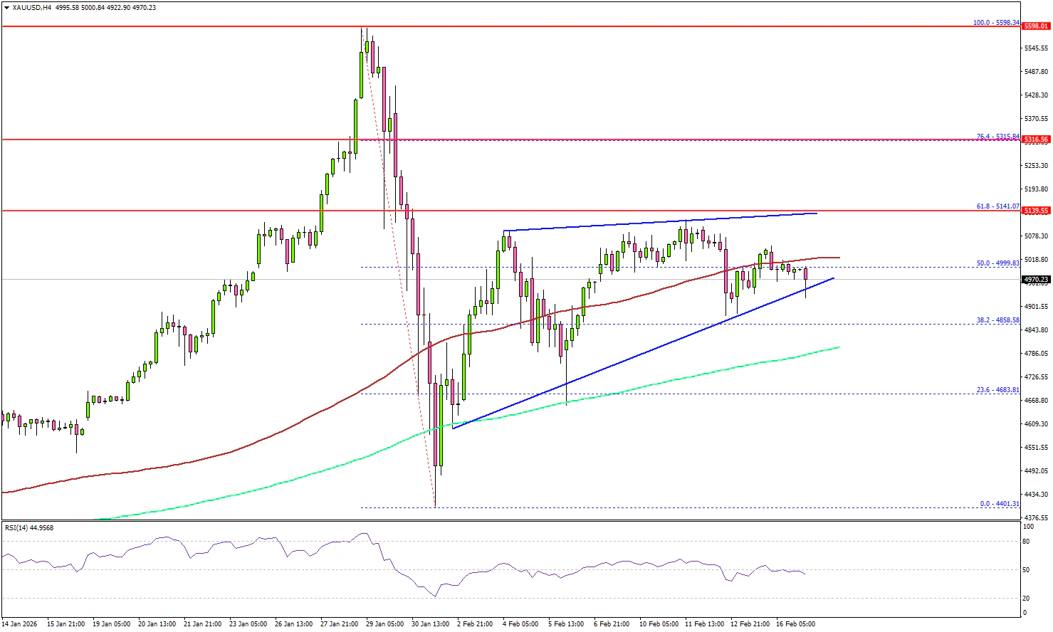 - 黄金自 4,850 美元和 5,000 美元上方开始新一轮上涨。