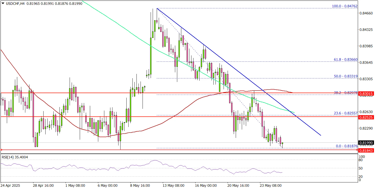 - 美元/瑞士法郎跌破0.8300支撑位,开启新一轮下跌。
