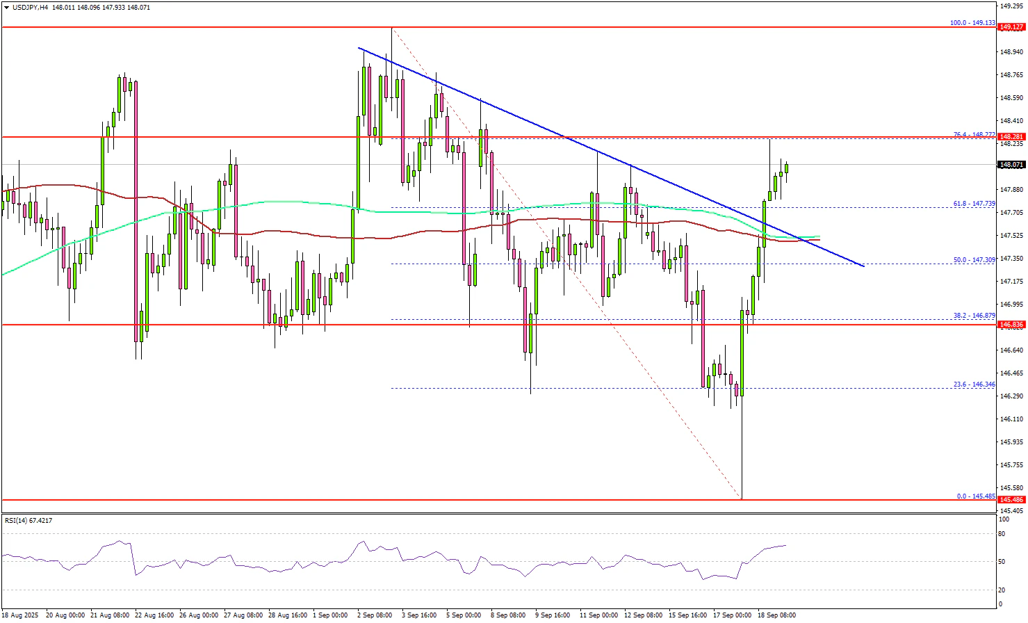 下行方面,147.50 是即时支撑。下一个关键关注区域可能在 147.20,主要支撑位在 146.50。若跌破,可能加大卖压并推动美元/日元跌向 146.00。