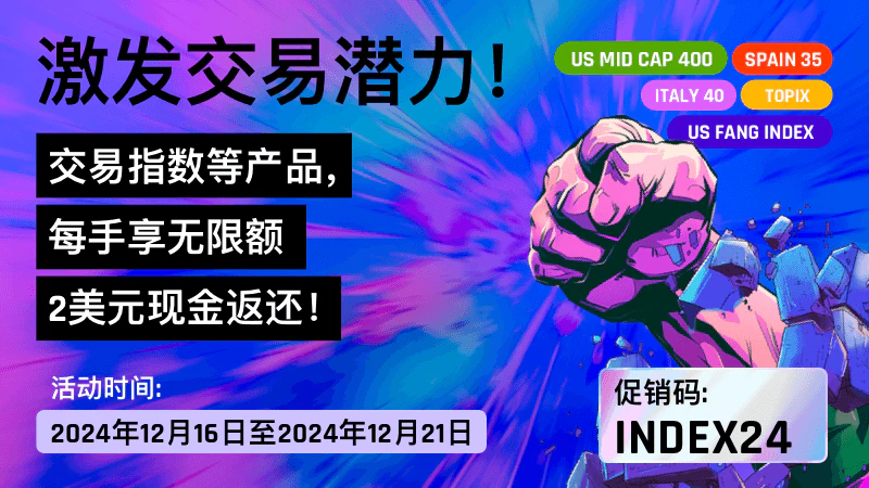 交易者可以使用专属优惠代码:INDEX24,体验我们广泛的指数产品,并借由 Titan FX 拓展您的交易策略。