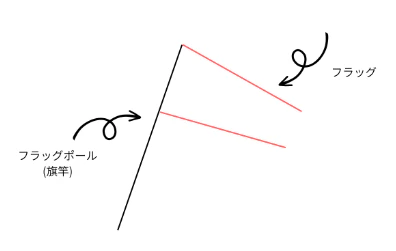 急激に価格が上昇した部分は「旗竿(フラッグポール)」と呼ばれ、一方的に価格が上昇していることが特徴です。マーケットの強い買い圧力を示しています。フラッグの部分は、トレーダーの利益確定による一時的な調整によって生じます。