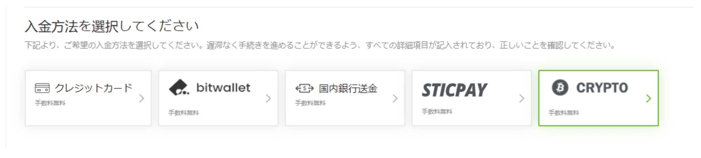 ご入金はクライアントキャビネットの入金メニューからお進み下さい。