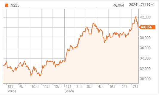 7月11日に史上最高値となる42,224円を付けた後、僅か5営業日で40,063円、2,000円近い下落となる等調整局面となっている。