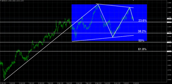 下降トレンドとなった場合には上図での61.8%の1.10300付近が意識される展開となりそう。