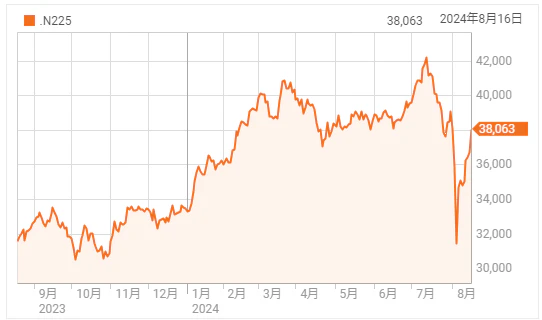 日本市場は8月13日の安値3,5476円から8月16日の高値37,888円まで2,412円の上昇、8月5日の安値からは実に6,700円の上昇と戻りを試す展開が続いている。