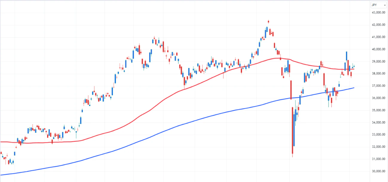 先週末に行った石破ショックによる日経平均CME、夜間取引で2,400円を超える下落は翌週月曜日に1,900円超の下落となったが、その後は値を戻すわけでもなく、夜間取引で値を下げて寄り付きからの動意は薄いという難しい相場展開を引き起こした。