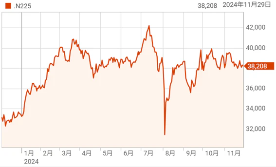 日本市場は日経平均38,208.03円と苦しい状況が続いている。