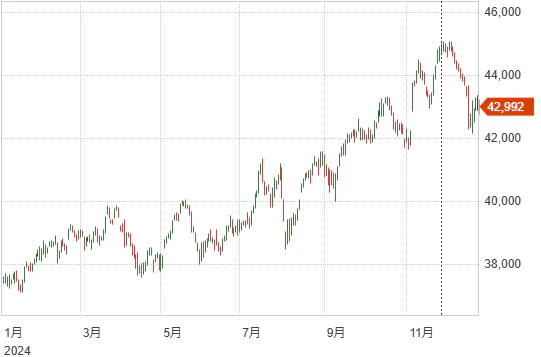 日経平均は1年で3,000~4,000円のアベレージで動く傾向にあり(特異的な事象の場合にはそれに当たらない)このまま日経平均40,000円台を維持して2024年を終えることが出来れば、25年は軟調相場となれば36,000を下限に、堅調相場となれば44,000を上限に推移する形となると思われる。