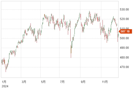 2022年10月から形成されていた三角持ち合いの推移が2024年10月末に終わり、上抜けとなっている。