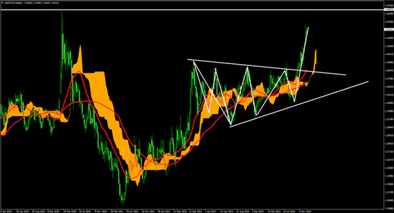 USD/CADの週足は三角持ち合いからの上抜け部分となっている。