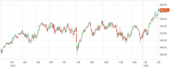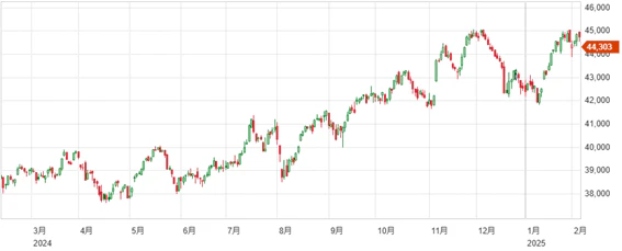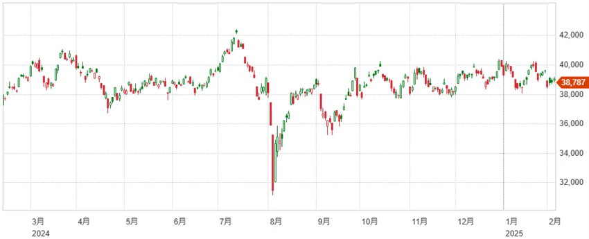先週月曜日、2月3日の終値38520.09円からは高い価格で週を終えたものの、2月3日の始値は38932.66円と週末の価格を上回る水準でスタートしており、上値の重い展開、日経平均40,000円の重さを実感できる推移となっている。