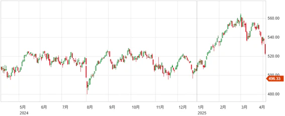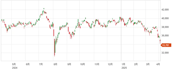 1週間で2,659円と言う下落幅となっており、米国トランプ政権による関税措置の影響の凄まじさの表れた1週間となった。