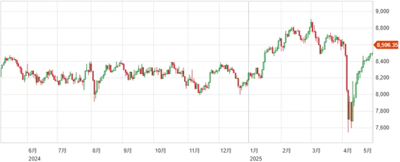 日本市場と同様に英国・欧州市場もトランプ政権による一連の市場の反応前の水準にまで値を戻しており、米国と主要貿易国との協議への期待感、企業行政の好調な流れなど追い風の吹く展開となっている。