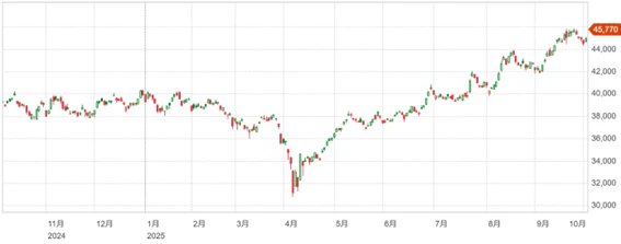自民党総裁選で高市早苗氏が自民党新総裁となったことを受けご祝儀相場、AIを中心とした牽引相場となっており、週明けの日本市場は46,000円台の可能性も視野に入る展開となっている。