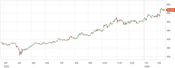 日本市場は56,825.70円で週を終えており、週間で387円安、月間では4,051円高での推移となっている。