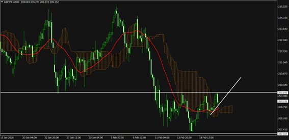 GBP/JPY4時間足では下降トレンドからの反転上昇の可能性が示唆されている。