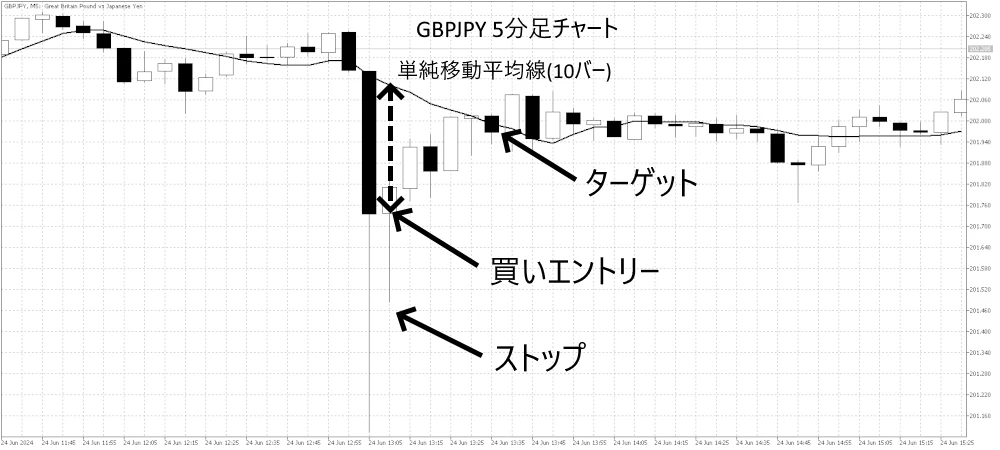 選挙が近づくにつれ、市場のボラティリティが増加する可能性が高くなります。世論調査に関する見出しによって市場が過剰反応を引き起こすことがあるので、それを利用する効果的な戦略として、5分足チャートを用いたレンジトレーディングがあります。10日単純移動平均線(10 bar SMA)から大きなギャップがある場合(例えば10ピップス以上)、それはトレーディングのチャンスを示しています。移動平均線よりも下に価格ギャップがある場合は買い、上にある場合は売りに入ります。市場が平均に戻り始めることを示す確認信号を待つことが重要です。この確認は、買いの場合は上向きバー、売りの場合は下向きバーがそれに該当します。目標は、価格が移動平均線に戻るときにトレードを終了し、一時的な市場の非合理性を利用して利益を確定させることです。