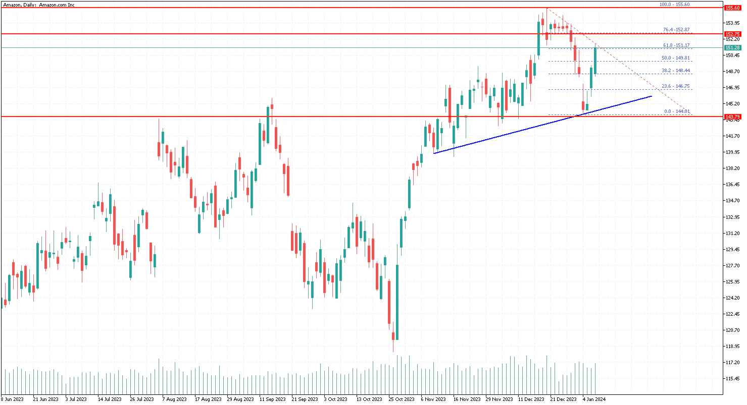 - Amazon’s stock price climbed higher above the $145.00 resistance.
