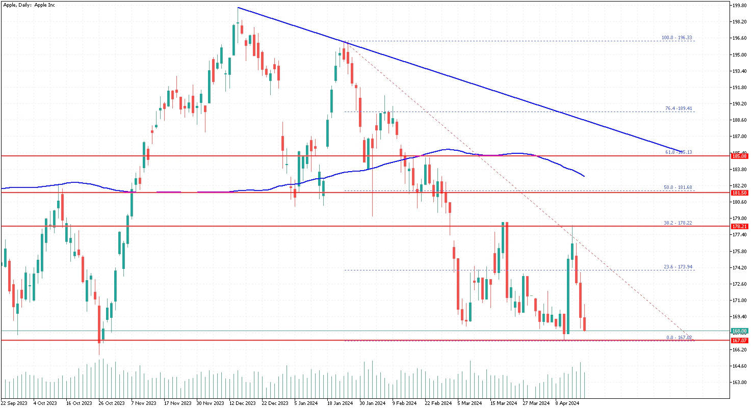 If not, Apple stock could continue to move down. The first major support is near the $167 level. The next key support is near the $162 level. Any more losses could resend the price toward $150 support.