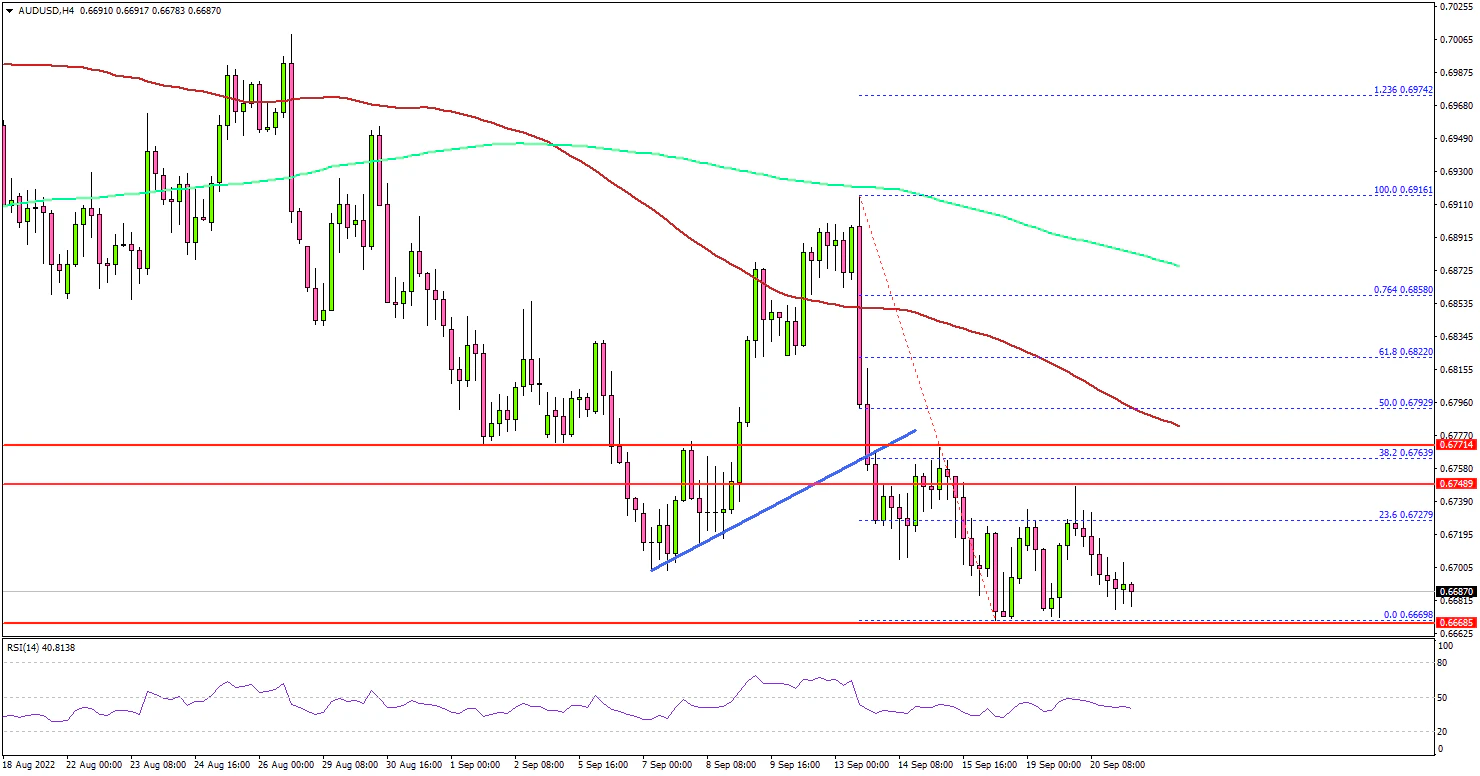 The pair even spiked below the 0.6700 level and a low was formed near 0.6669. The pair started a consolidation phase above the 0.6670 level. On the upside, an initial resistance sits near the 0.6750 zone.