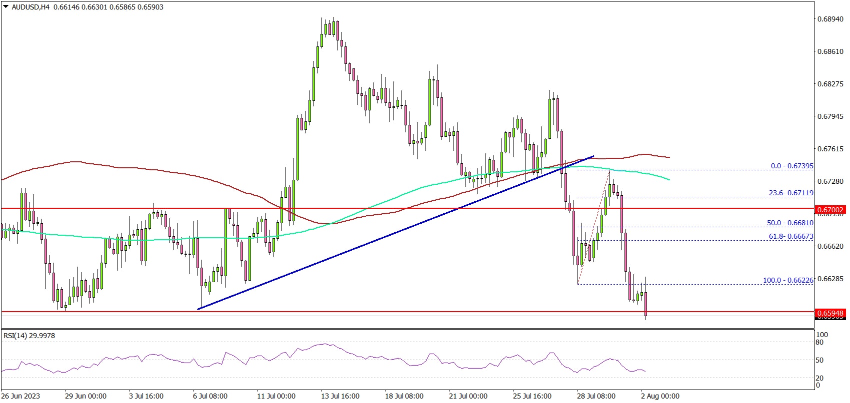 • AUD/USD is struggling to stay above the 0.6600 support zone.