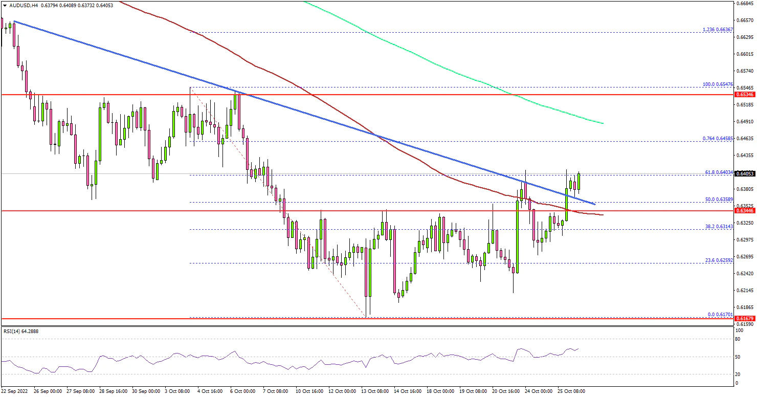 Looking at the 4-hours chart, the pair settled above the 0.6350 level and the 100 simple moving average (red, 4-hours). Besides, there was a break above a key bearish trend line with resistance near 0.6380 on the same chart.
