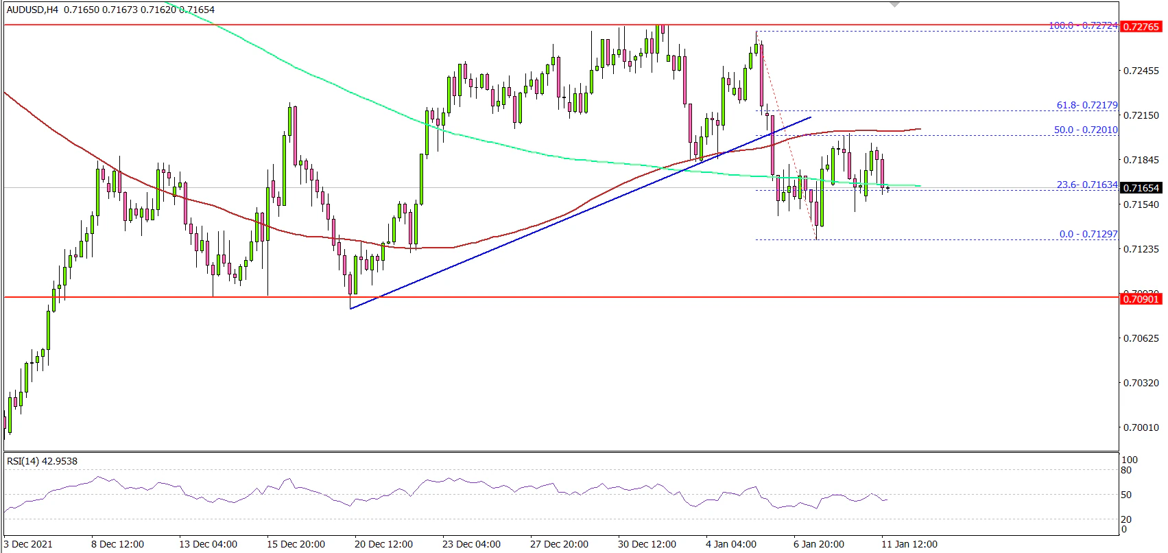 On the upside, the pair is facing resistance near 0.7200 level and the 100 simple moving average (red, 4-hours). The next major resistance is near the 0.7220 level, above which the pair could revisit 0.7270.
