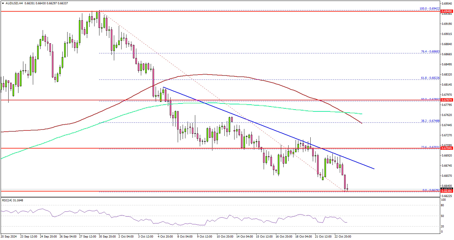 The Aussie Dollar started a fresh decline below the 0.6800 level against the US Dollar. AUD/USD traded below 0.6750 to move into a bearish zone.