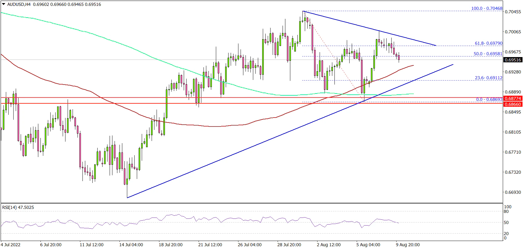 On the downside, the first major support is near the 0.6920 level. A downside break below the 0.6920 support might spark more losses. The next major support is near 0.6860. Any more losses might send the pair towards the 0.6800 zone.