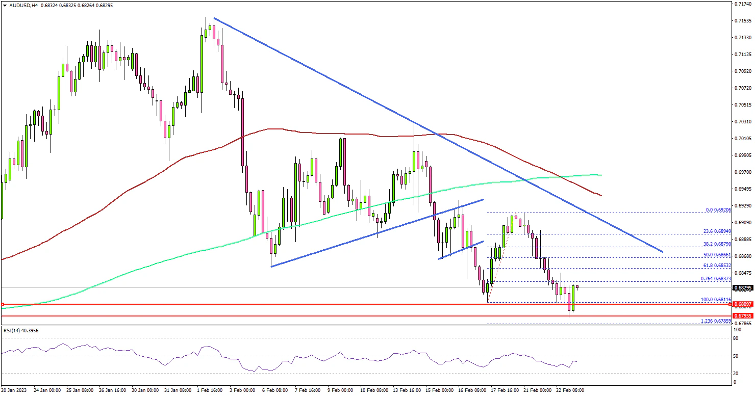 There was a clear move below the 0.6880 support zone. The pair even spiked below the 0.6820 level and remains at a risk of more losses. On the downside, an immediate support is near the 0.6800 level.