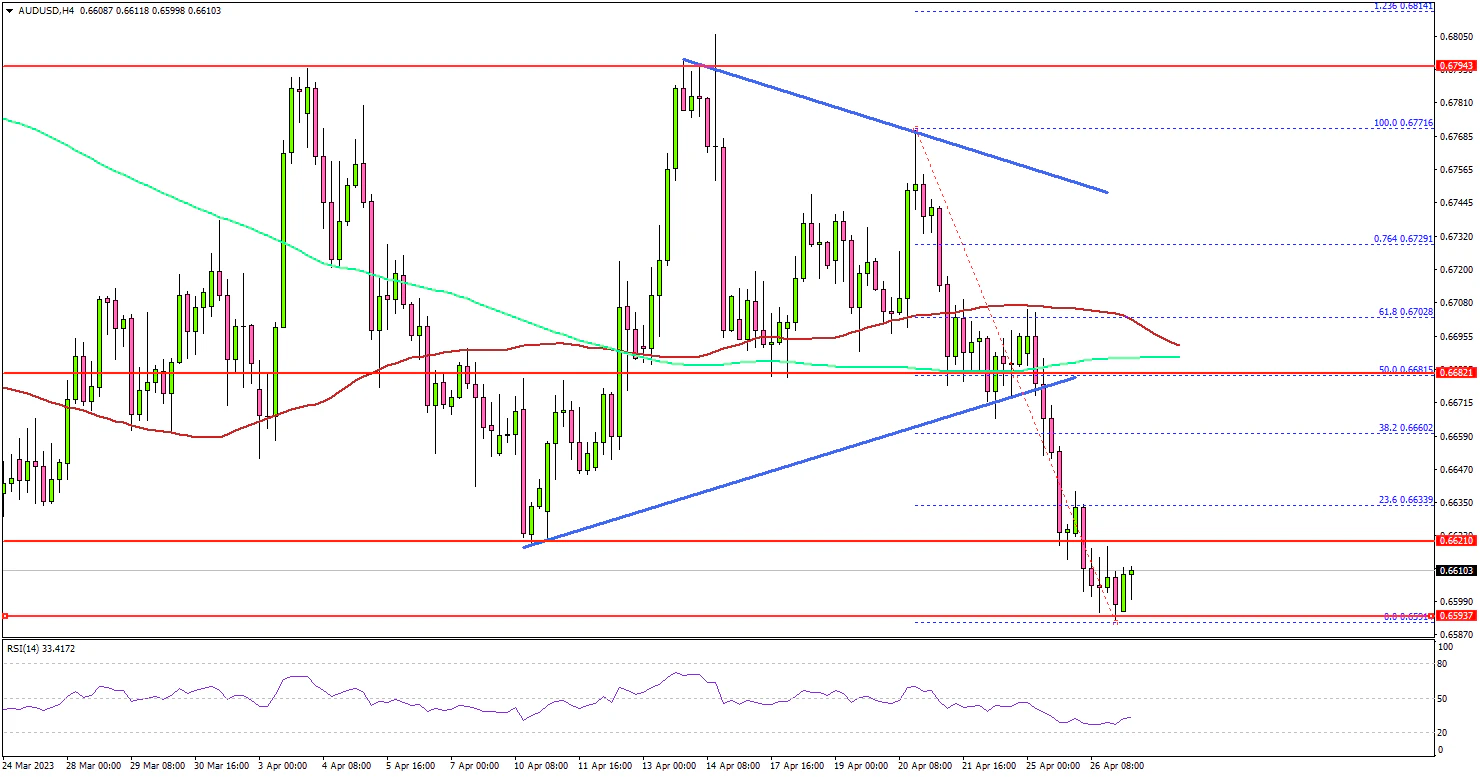 It tested the 0.6600 support zone and started a consolidation phase. Immediate resistance on the upside is near the 0.6625 level.