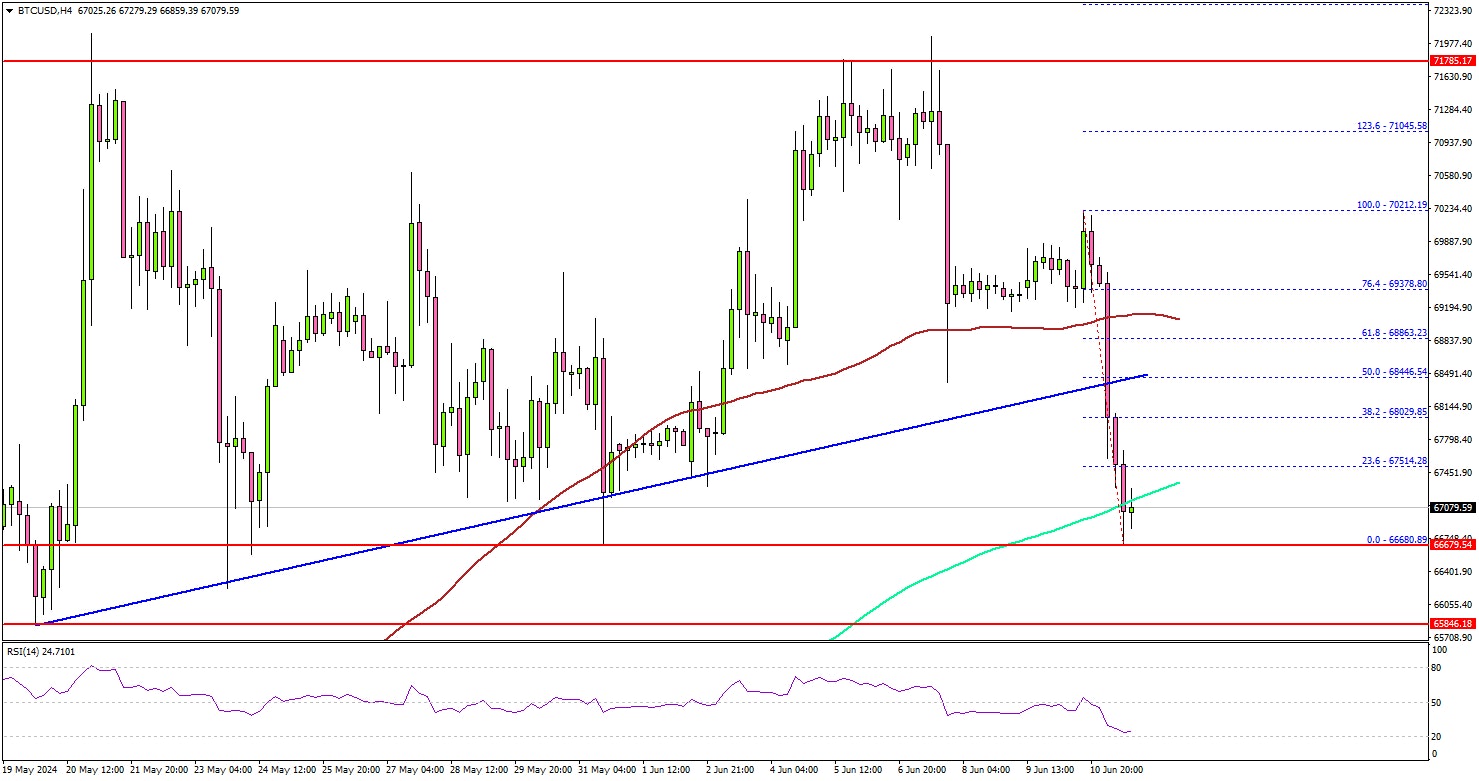 Conversely, Bitcoin might extend losses. Immediate support is near the $66,500 level. The main support sits at $66,000. Any more losses might send the price toward the $62,500 support zone.