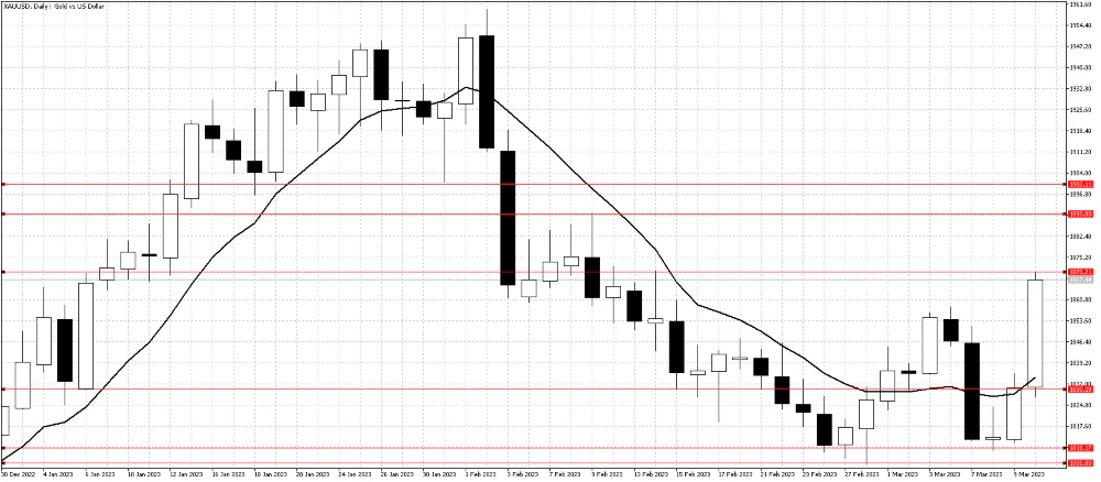 Range traders were rewarded at the end of the week as problems at the Silicon Valley Bank boosted prices. The current view from analysts is that the issues are contained to this bank only, but given the US equity markets closed below support last Friday, Gold could benefit from further safe-haven buying.