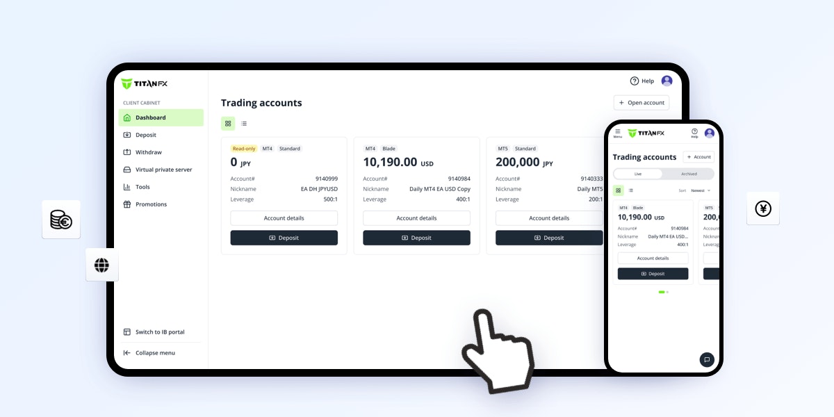 We’ve upgraded the Titan FX Client Cabinet to bring you a faster, smoother, and more personalized trading experience.