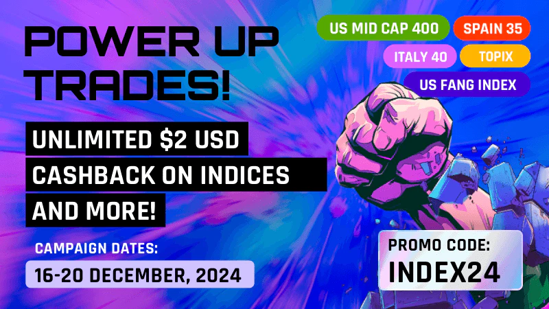 In celebration of these new instruments, our "Power Up Trades!" promotion goes live on 16th Dec. Traders can use the special promo code: INDEX24 to experience our broad index offerings and expand their trading strategies with Titan FX.