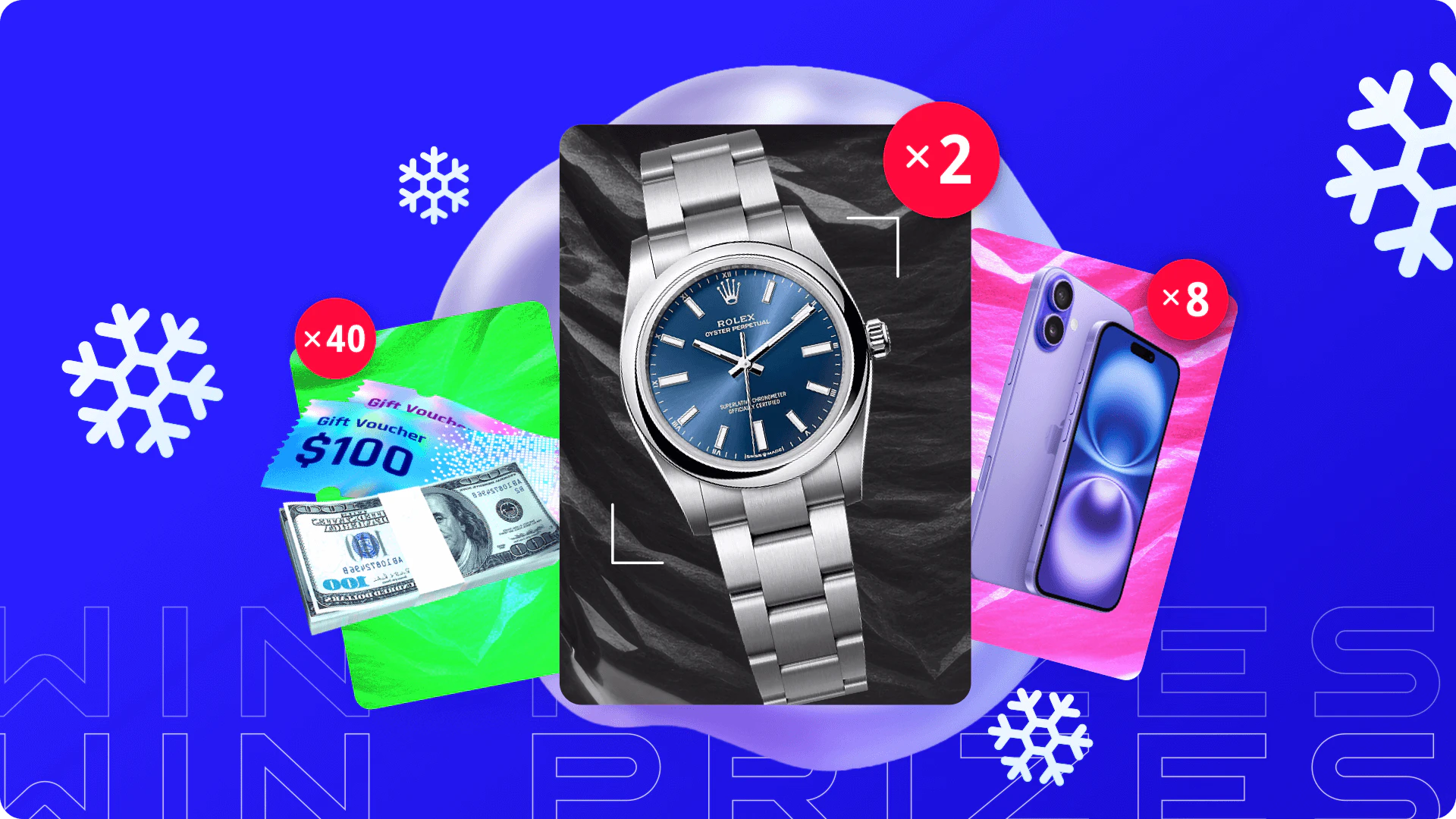 Platinum Level - 2 lucky winners will receive: Rolex Oyster Perpetual or $7,300 cash