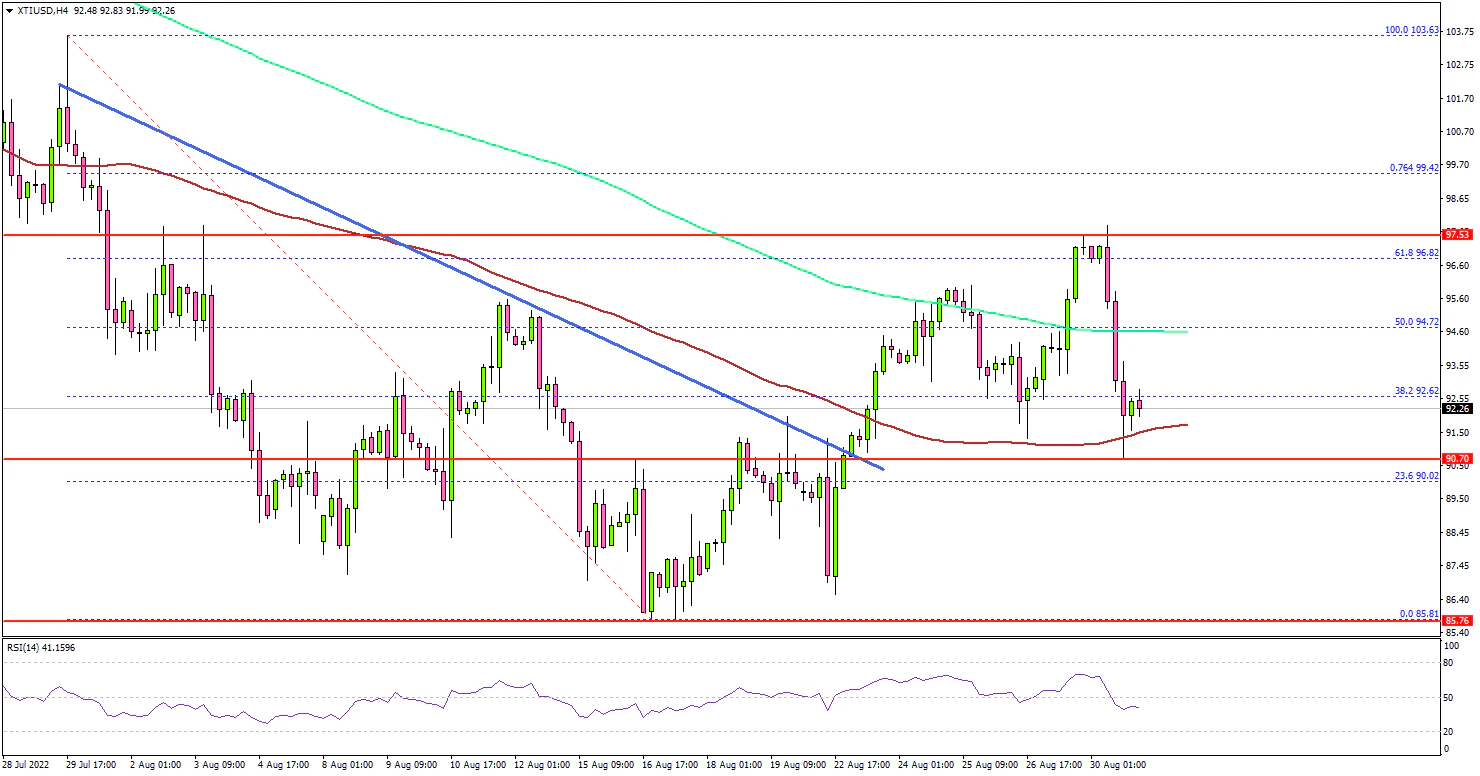 After forming a base above the $85 level, crude oil price started a fresh increase against the US Dollar. The price was able to clear the $90 and $92 resistance levels.