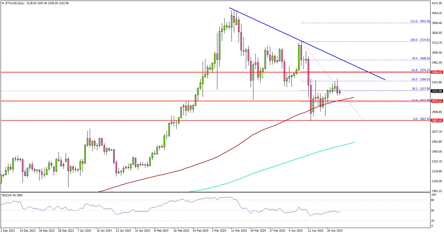 If not, the price might start another decline and test the $3,120 support level. The next major support is near $3,025, below which the price could slide toward $2,800.