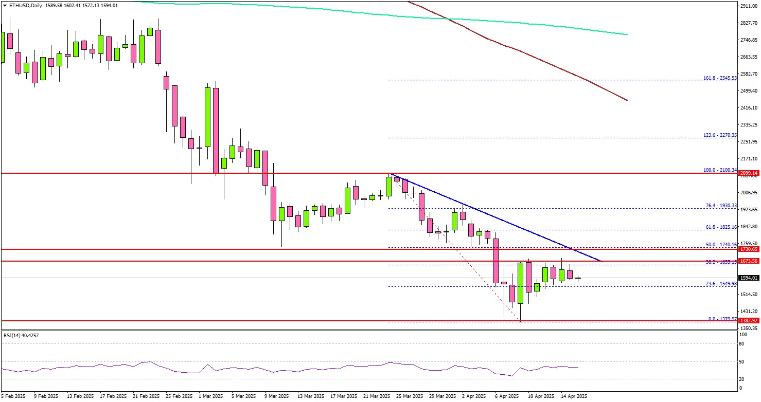 On the downside, Ethereum might find support near the $1,450 level. The next major support is $1,375, below which the price could slide toward $1,320. Any more losses might call for a move toward the $1,200 level.