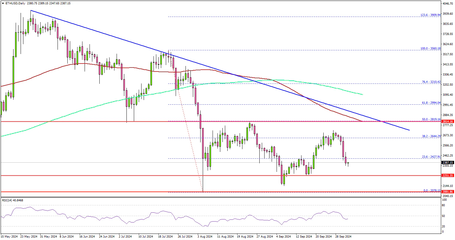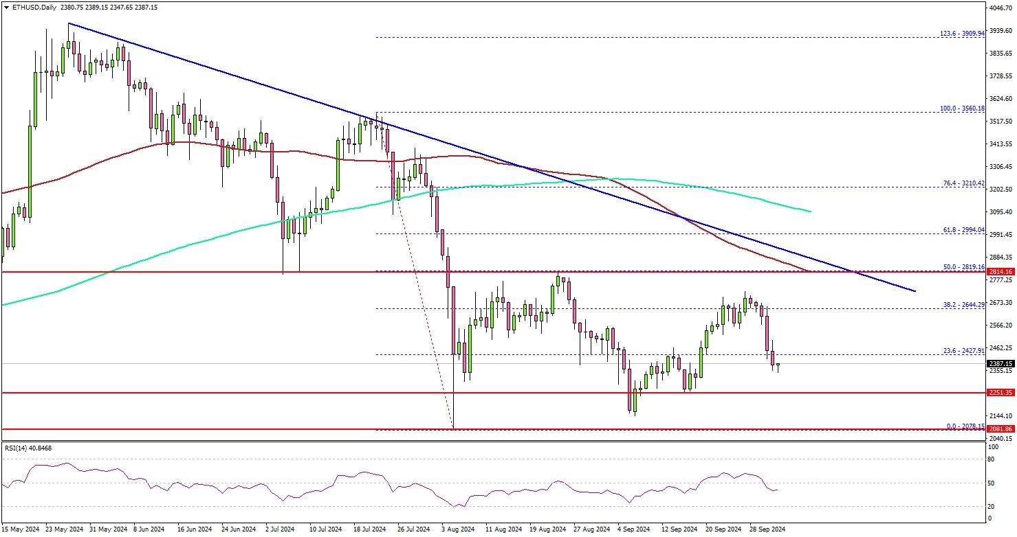 Ethereum struggled to surpass the $2,750 level and corrected gains. There was a rejection pattern on the chart, suggesting that ETH could face more downsides.