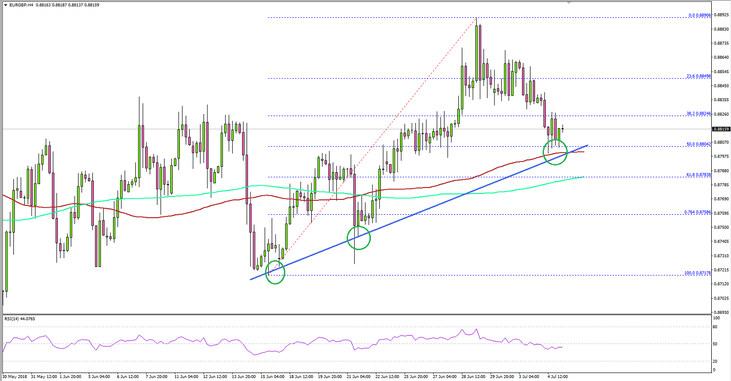 The Euro was in a major uptrend from the 0.8720 swing low against the British Pound. The EUR/GBP pair traded above the 0.8880 level before starting a downside correction.
