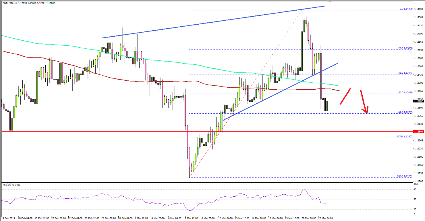 This past week, the Euro followed a solid bullish path and traded above 1.1400 against the US Dollar. However, the EUR/USD pair faced a strong resistance near 1.1450 and recently started a downside correction.