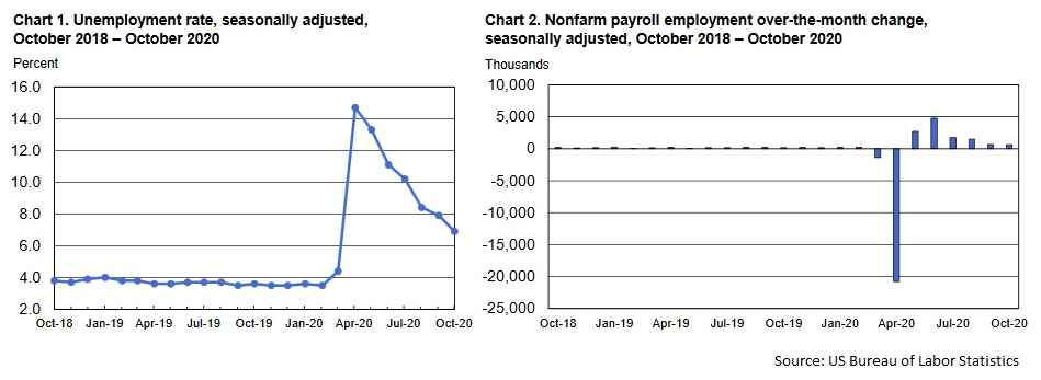 Fundamentally, the US nonfarm payrolls report for Oct 2020 was released this past Friday by the US Bureau of Labor Statistics. The market was looking for a rise of 600K in jobs.