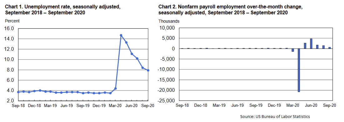 Fundamentally, the US nonfarm payrolls report for Sep 2020 was released this past Friday by the US Bureau of Labor Statistics. The market was looking for an increase 850K in Sep 2020.