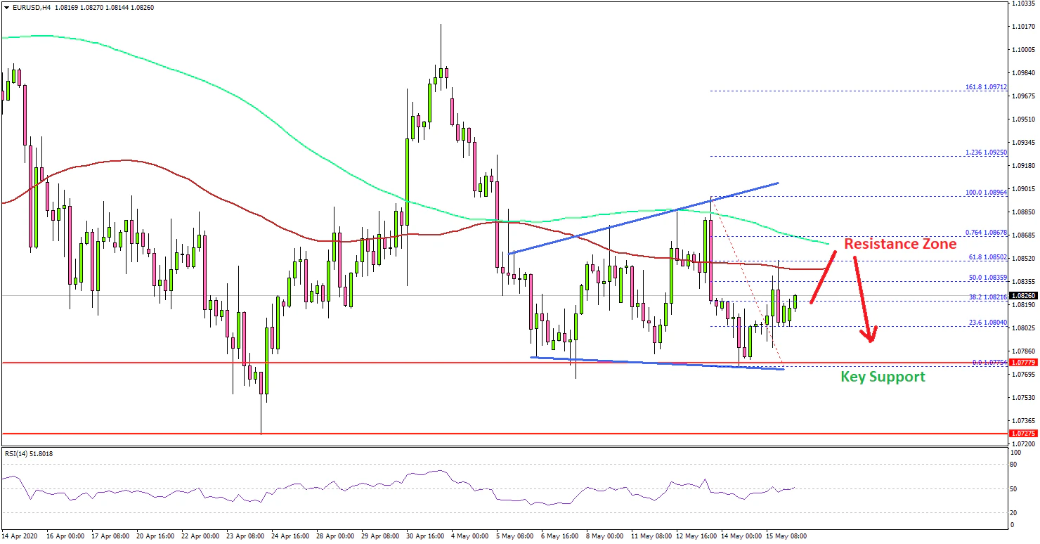 - A major support base is forming near 1.0780 and 1.0750 on the 4-hours chart.