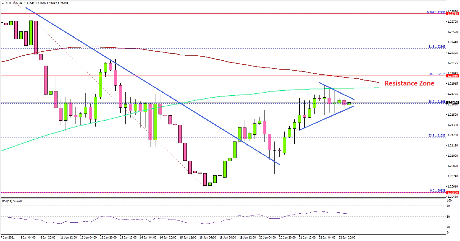 - It is facing a strong resistance near 1.2200 on the 4-hours chart.