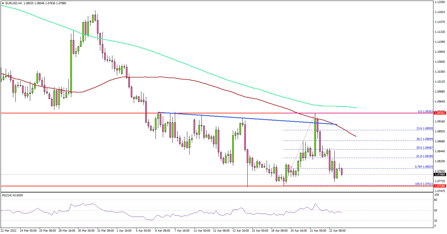 The pair is now struggling to stay above the 1.0760 and 1.0750 support levels. A downside break and close below the 1.0750 level could increase selling pressure.