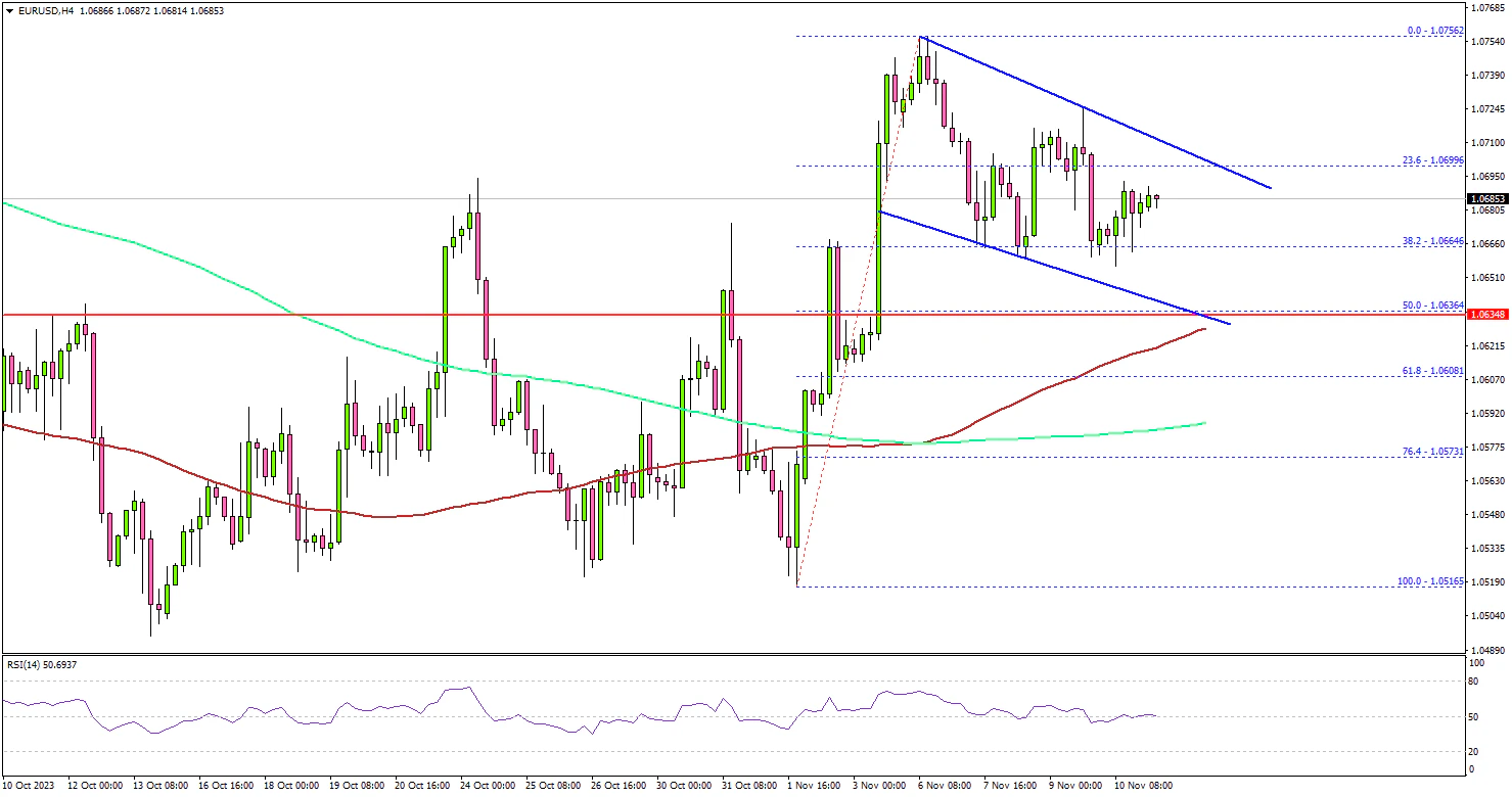 There is also a key declining channel forming with resistance near 1.0690 on the same chart. If there is a fresh increase, the pair could surpass the channel resistance. The next key resistance is near the 1.0720 level.